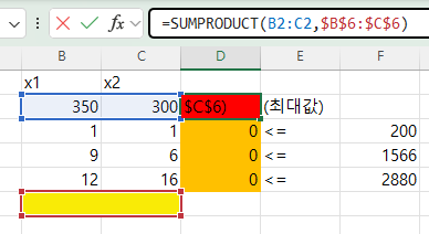 위 식에서는 SUMPRODUCT(B2:C2,$B$6:$C$6)