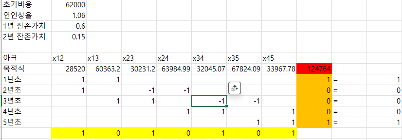 변수(arc)가 부족하여 노드 숫자만큼 제약식이 나오지 않으면
