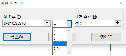 제한 조건에는 int 대신 bin을 넣습니다.